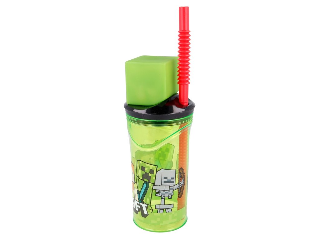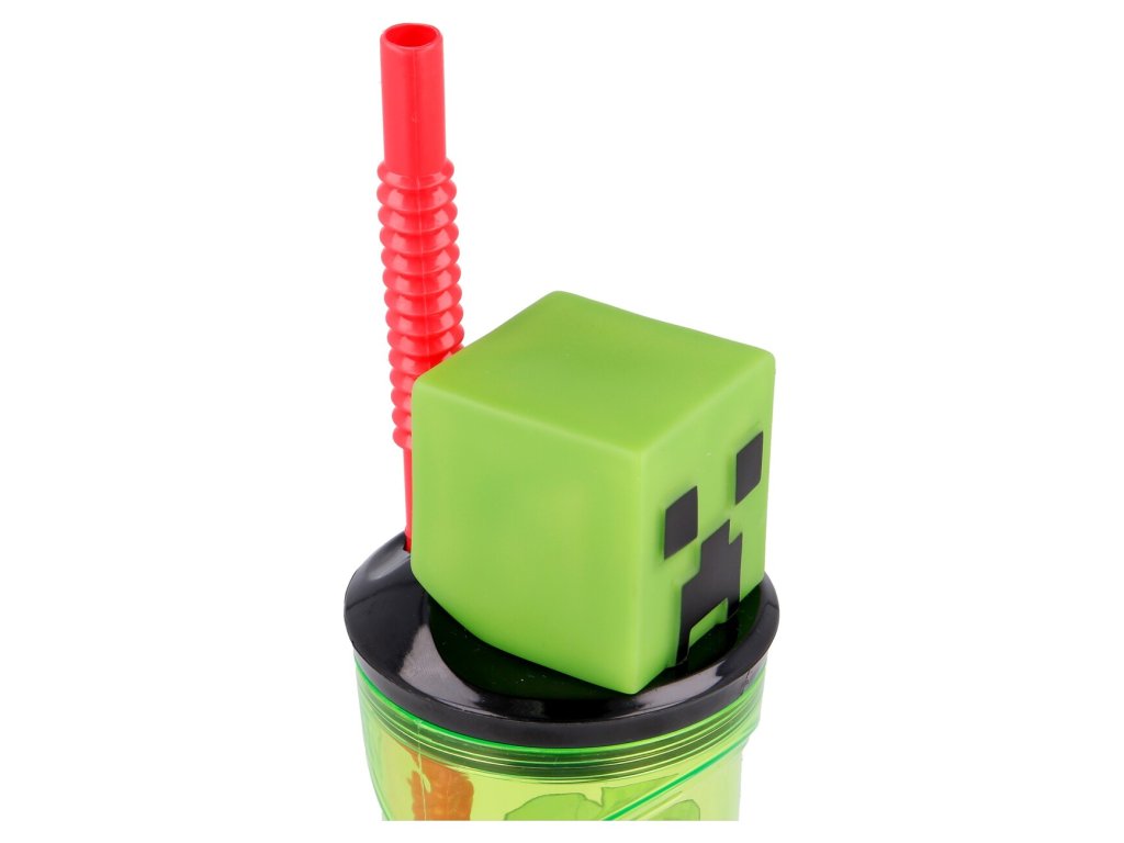 Originální dětský pohár na pití se zabudovaným brčkem a 3D hlavou z Minecraft.