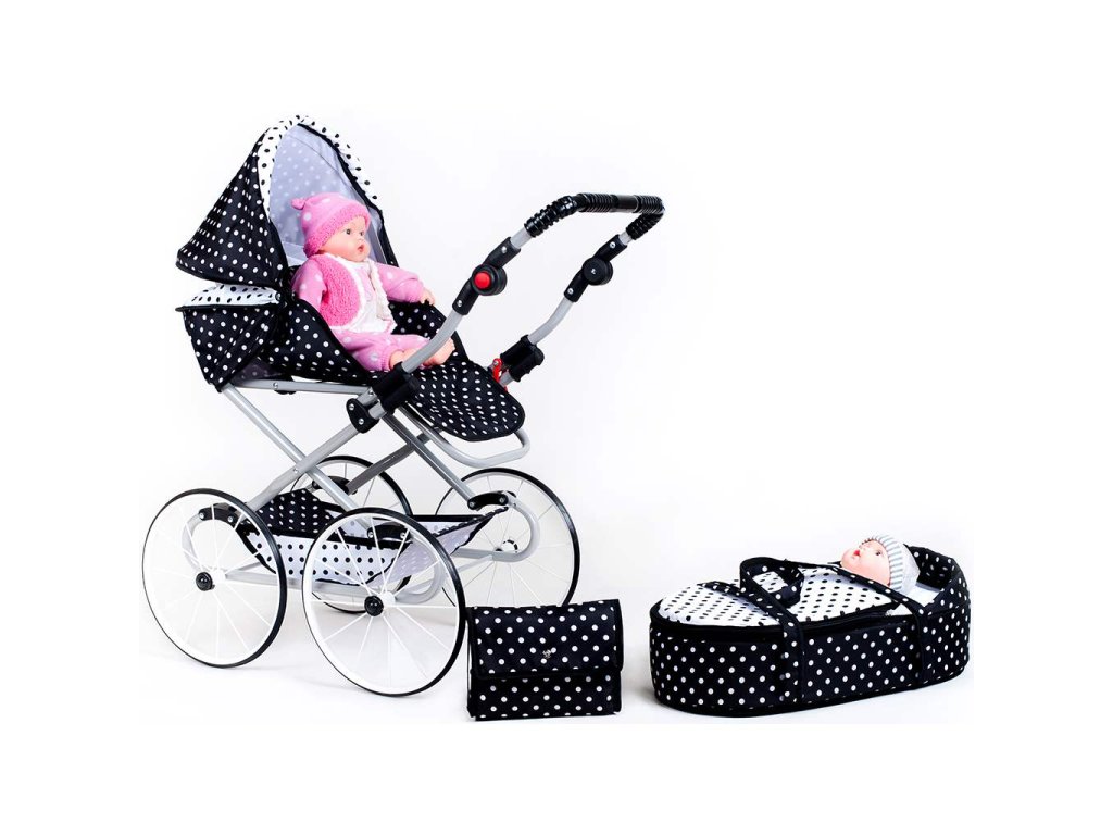 Krásný a jedinečný dětský Retro kočárek 2v1 New Baby Natálka pro malé slečny. Kočárek je velmi kvalitní s kovovou konstrukcí. Hluboký kočárek lze upravit i na sportovní. Korbička je upevněná ve směru jízdy a lze jí použít na přenášení panenky. Korbička má zapínání na zip. Kočárek má nastavitelnou rukojeť. Součástí je i taška na drobnosti v barvě kočárku a velký nákupní košík. Moderní a lehký kočárek pro panenky s klasickou odpruženou konstrukcí v pestrých barvách. Kočárek má pojistku proti samovolnému složení. Vyrobeno v EU.
