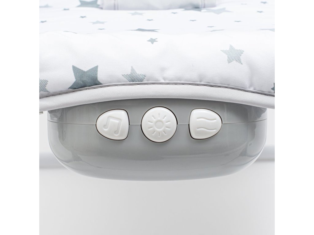 Můžete v něm miminko uložit ke krátkému spánku, stačí pouze opěradlo sklopit, zapnout bezpečnostní pásy, zapnout funkci jemných vibrací a namontovat držák s hračkami. Starší děti v něm mohou sedět, houpat se, prohlížet si knížky nebo si kreslit.