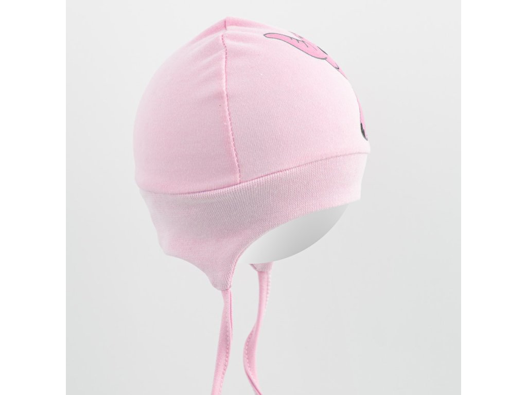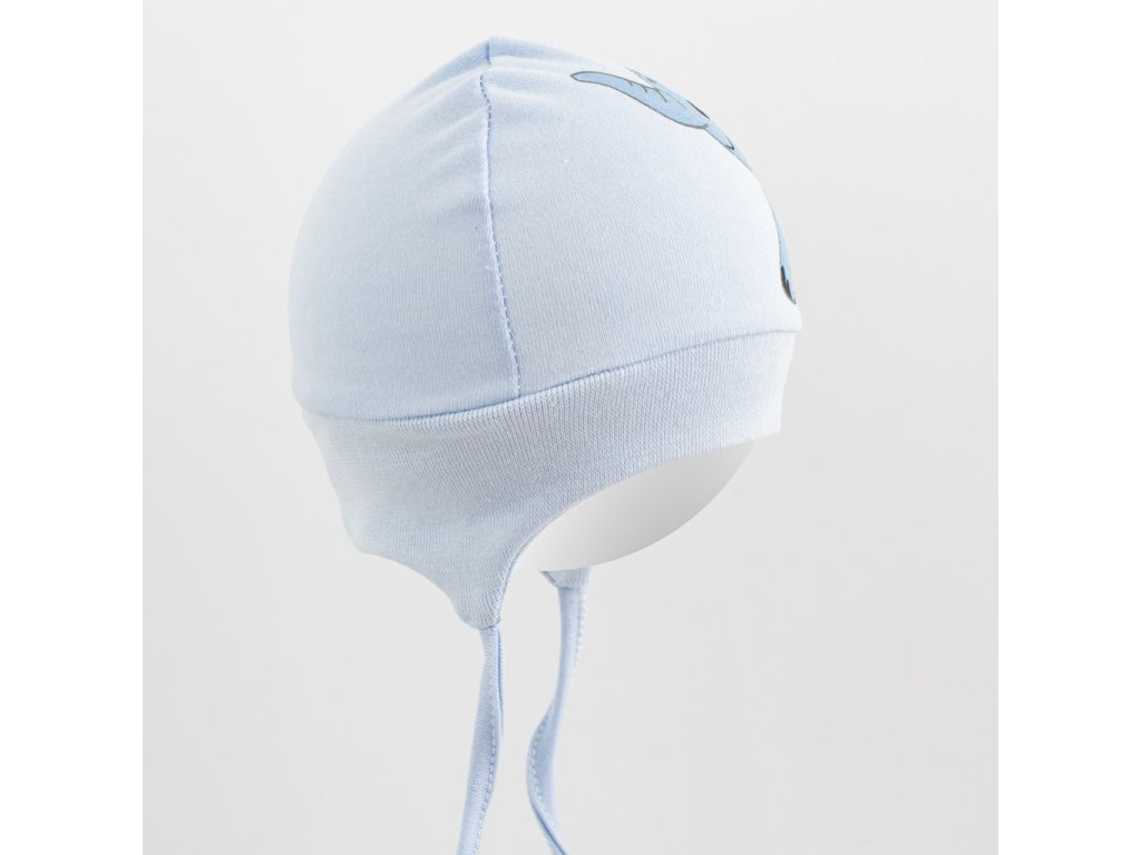Čepička netlačí a bude dobře držet na hlavičce miminka. Je krásně tvarovaná na ouška a zavazuje se na tkaničky.