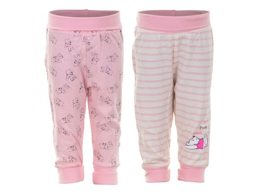 Praktické kojenecké tepláky s medvídkem Pú v balení 2 kusů jsou ideální volbou pro pohodlí dětí při každodenních aktivitách. Sada obsahuje jedny růžové tepláky a druhé v jemné krémové barvě s růžovými proužky. Díky něžným barvám a oblíbenému motivu působí oblečení hravě a roztomile.