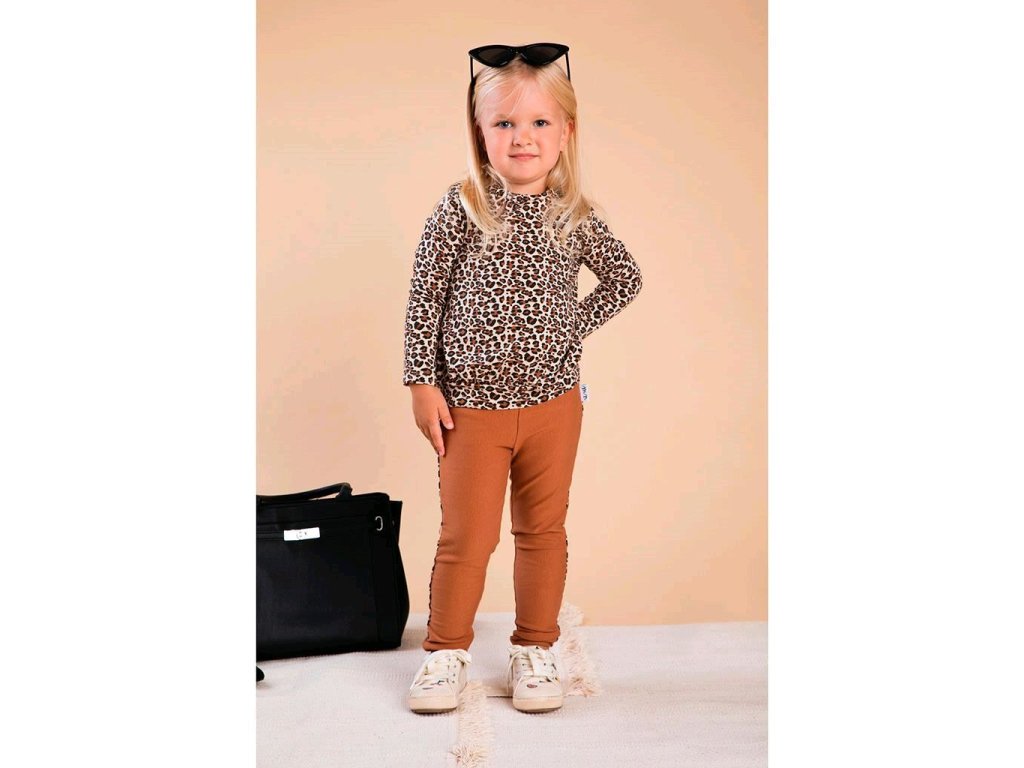 Praktické dětské bavlněné legíny Nicol Mia, na bocích zdobené lemem se vzorem leopardí srsti. Legíny jsou velmi praktickým kouskem oblečení pro malé děti. V pase mají širší gumičku a jsou zúžené na nohavičkách.