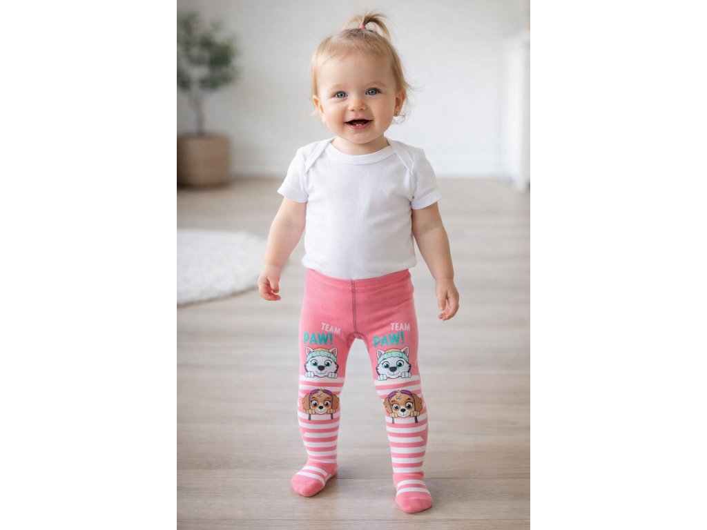 Kojenecké punčocháče TLAPKOVÁ PATROLA Skye a Everest růžové
