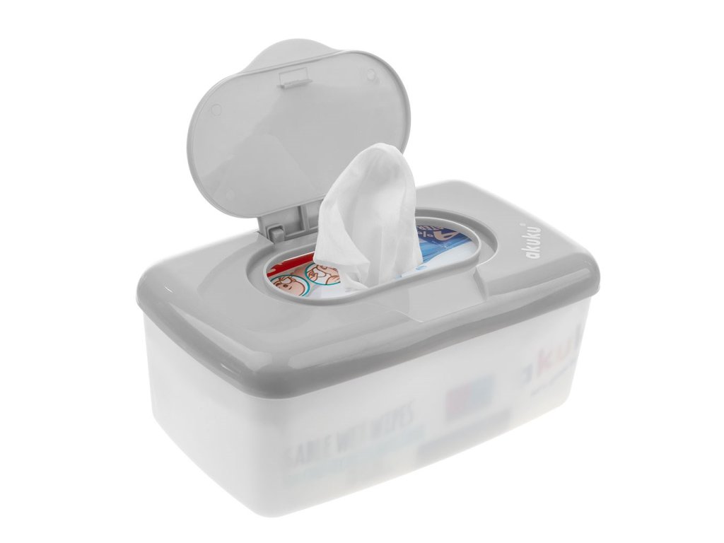 Praktická a funkční krabička na vlhčené ubrousky je vhodná na doma, na cesty i na procházky. Díky své malé velikosti se snadno vejde do tašky. Nádoba zabraňuje vysychání ubrousků, snadno se používá a je lehká. Víko s velkým tlačítkem umožňuje otevřít nádobu bez námahy jednou rukou.