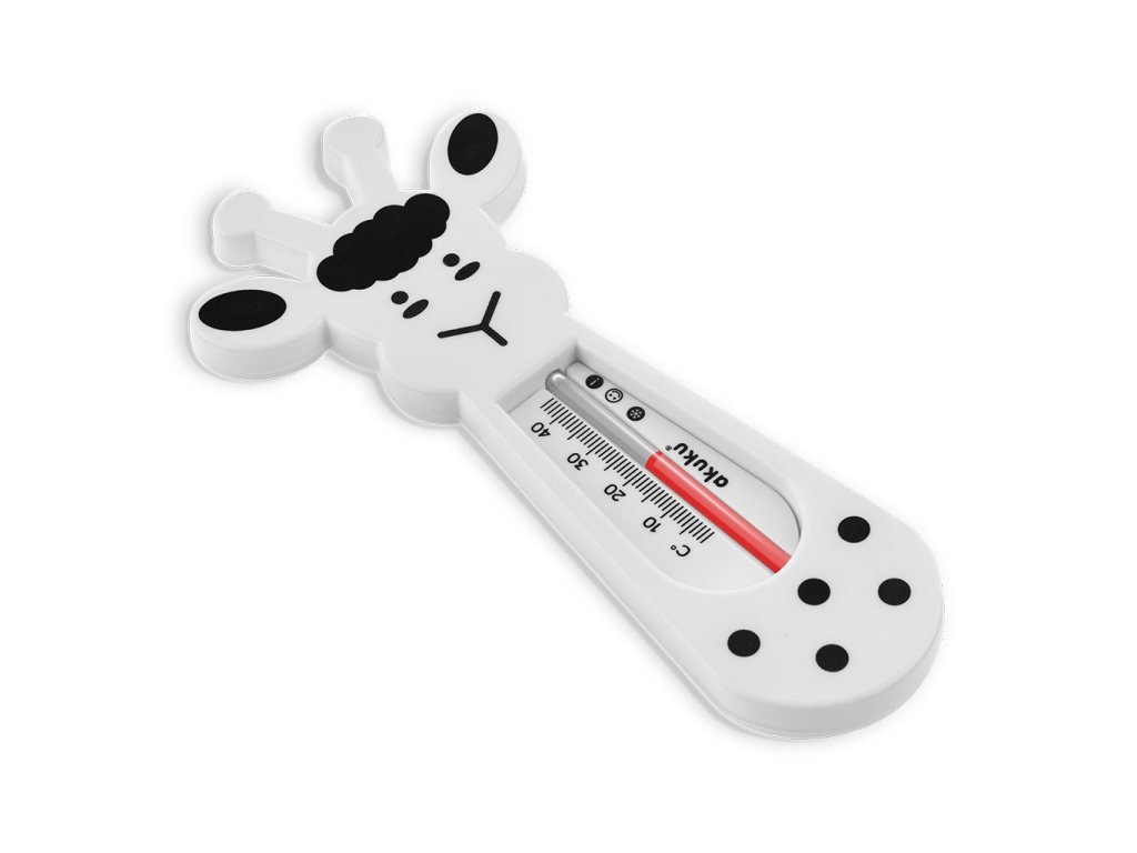 Plovoucí dětský teploměr do vaničky Akuku. Díky velké stupnici lze zjistit hodnotu teploty.