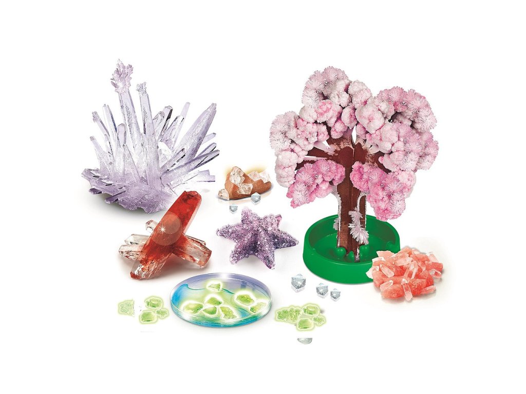 Děti se během experimentování seznámí se základními principy chemických reakcí a procesem krystalizace. V sadě najdou vše potřebné pro vytvoření vlastních krystalových struktur a dekorativních krystalových objektů.