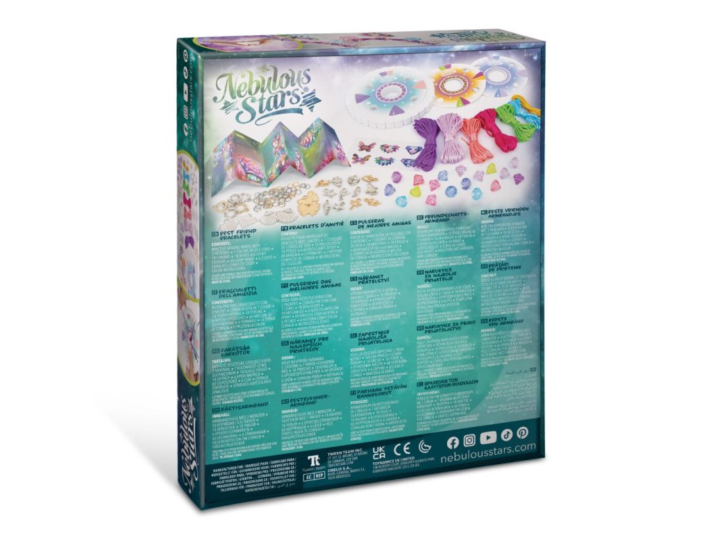 Součástí balení je speciální kolečko pro pletení náramků a obrázkový návod se třemi různými vzory. Barevné bavlnky lze kombinovat podle vlastní fantazie a hotové náramky doplnit korálky, kovovými přívěsky nebo epoxidovými samolepkami s motivy Nebulous Stars.