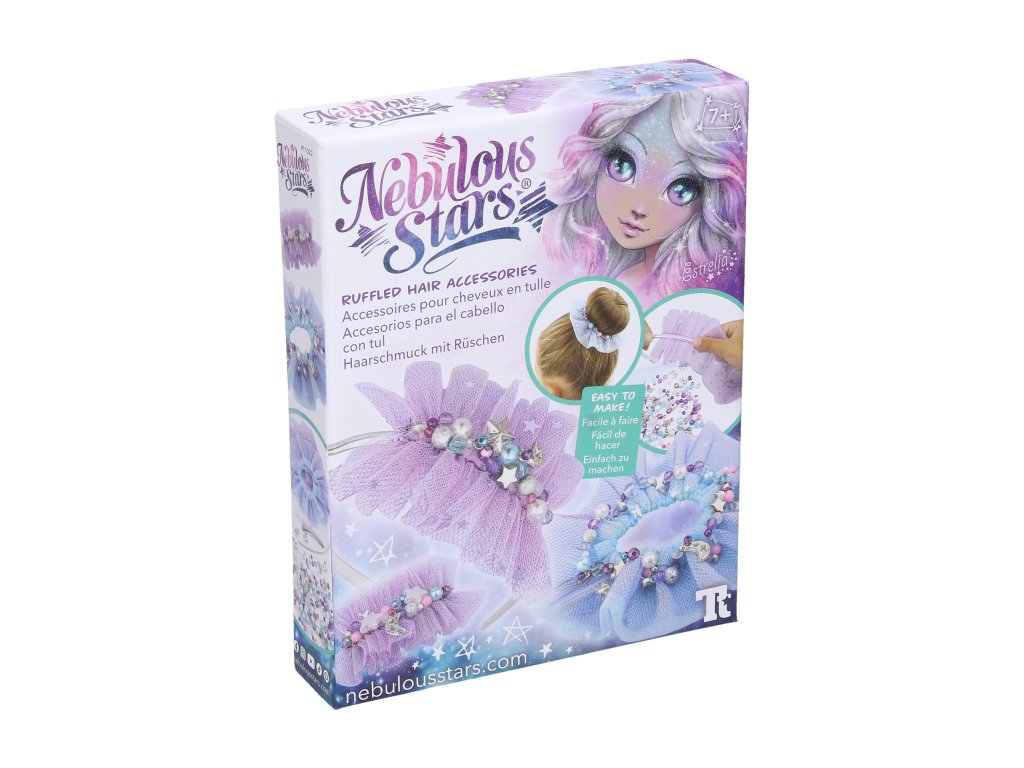 Nebulous Stars ozdoby do vlasů Estrelia. Vyrob si vlastní ozdoby do vlasů s třásněmi. Obsah balení - 3 tylové pásky, 1 čelenka, 1 spona, výběr korálků a přívěšků, gumičky, příběh, návod.Doplňkové parametry
