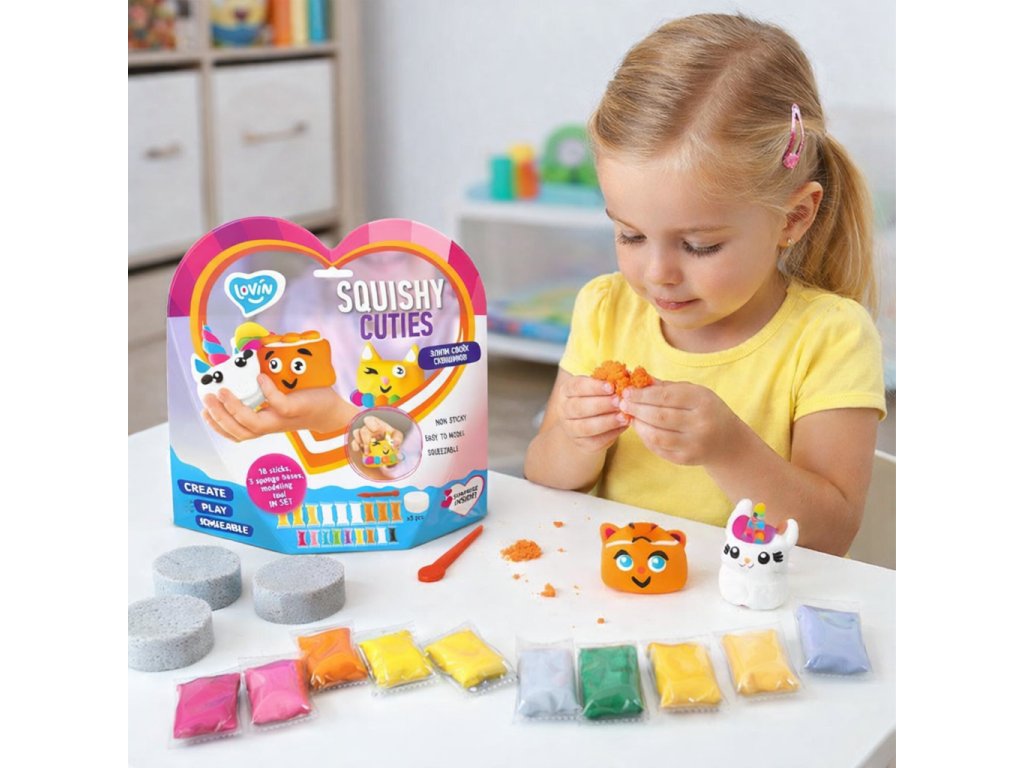 Děti si pomocí barevných modelovacích materiálů a základů vytvoří vlastní squishy postavičky podle své fantazie. Kreativní krabička je okamžitě zaujme a zabaví na dlouhou dobu.