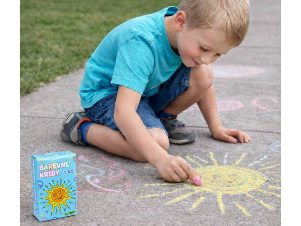 Chodníkové křídy podporují dětskou fantazii, kreativitu i jemnou motoriku a jsou skvělou volbou pro venkovní hry s kamarády i rodinou.