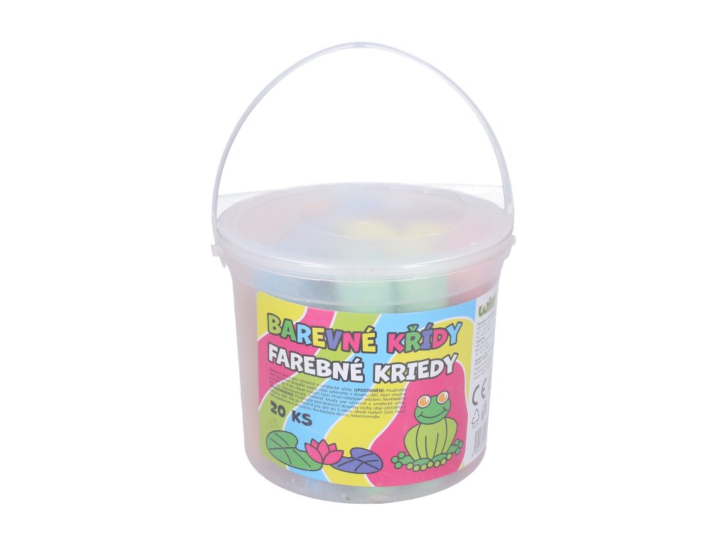 Kulaté barevné chodníkové křídy v kyblíku. • 20 ks v balení
