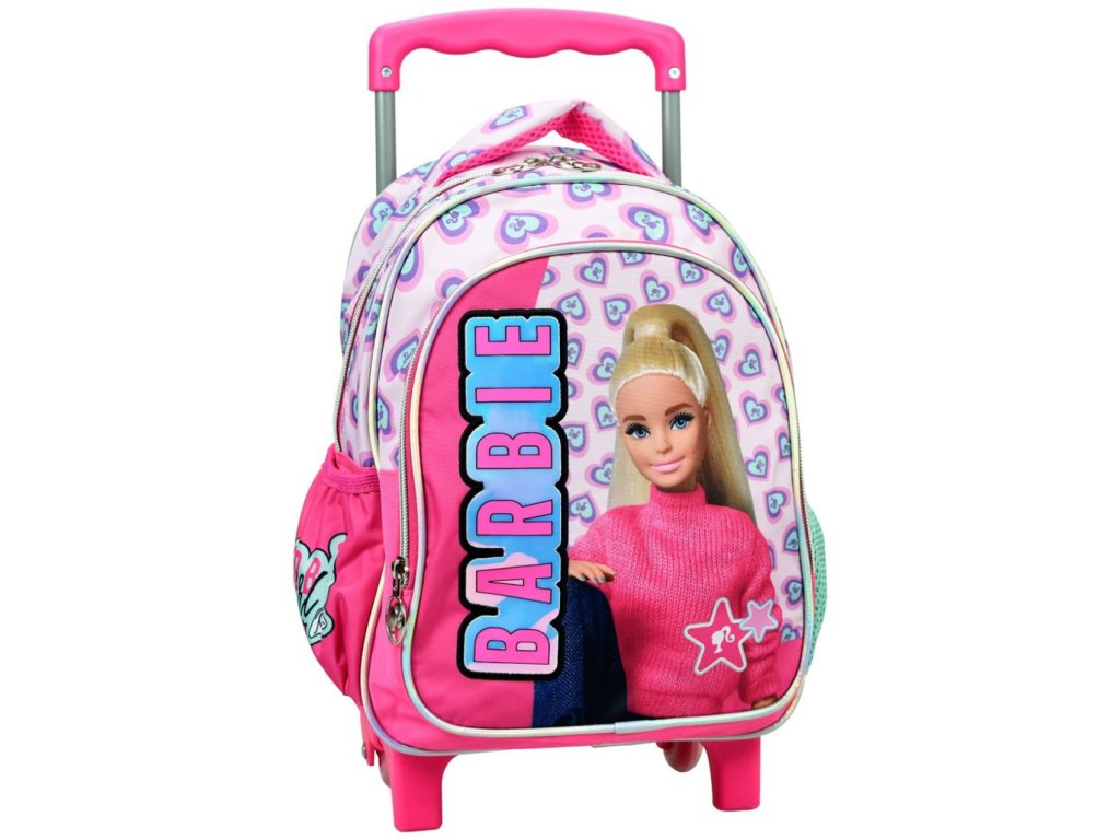 Hledáte praktický a zároveň stylový dětský batoh na cesty, výlety nebo přespání u kamarádů? Cestovní batoh na kolečkách Barbie s roztomilým potiskem srdíček nadchne každou malou slečnu a zároveň nabídne dostatek prostoru i pohodlí při nošení.
