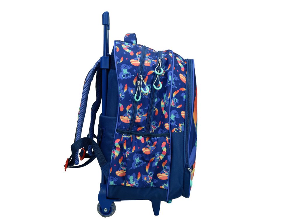 Úžasný batoh na kolečkách Disney Lilo a Stitch Chillin’ je ideální do školy, na výlety i cestování. Atraktivní tmavě modrý design s oblíbenou postavičkou Stitche a dalšími barevnými detaily zaujme a nadchne. Díky teleskopické rukojeti a kolečkům lze batoh pohodlně tahat, ale také nosit na zádech.