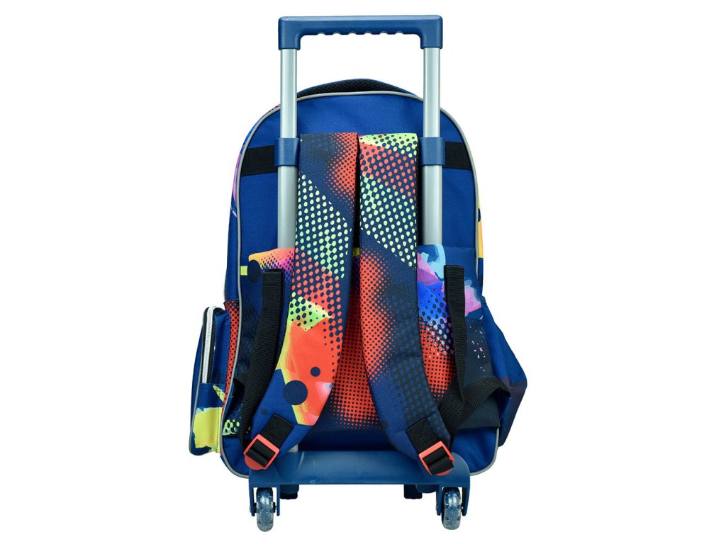 Batoh je vybaven teleskopickou výsuvnou rukojetí a pevnými kolečky pro snadnou manipulaci. V případě potřeby jej lze nosit také na zádech – má nastavitelné a pohodlné ramenní popruhy. 🎒