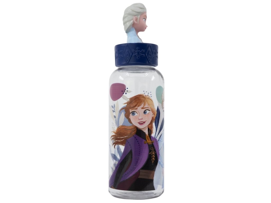 Originální kousek nejen do školy - dětská láhev Disney Frozen potěší všechny fanynky Ledového království. Transparentní provedení s motivem oblíbených princezen Anny a Elsy doplňuje originální víčko s 3D figurkou Elsy, které dodává láhvi jedinečný vzhled. Láhev je vhodná do školy, na výlety i každodenní používání.