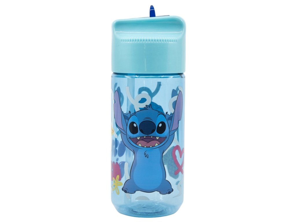 Plastová láhev Disney Lilo and Stitch v modrém provedení přináší veselý vzhled doplněný barevnými detaily a tropickými prvky. Transparentní materiál umožňuje snadnou kontrolu množství nápoje. Model je vybaven výklopným hrdlem, které pomáhá zabránit znečištění a zvyšuje hygienu při používání. Ergonomický tvar podporuje pohodlné držení.