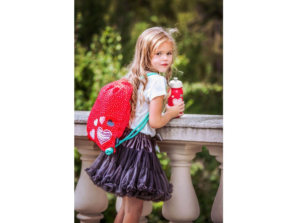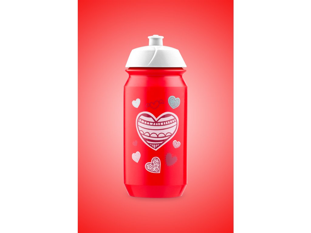 Lahev na pití plná srdíček. Krásná a praktická láhev v červeném provedení, která je vyrobena z bezpečných plastů, neobsahujících BPA. Holky tuto láhev využijí do školy, na výlety i na sport, kdy objem 500 ml je ideální velikost i do batohů či školních aktovek.