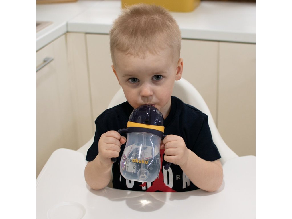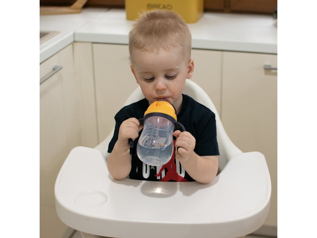 Díky slámce se závažíčkem dítě vypije vše až do poslední kapky a to i láhví otočenou vzhůru nohama. Nepostradatelná doma i na cestách.