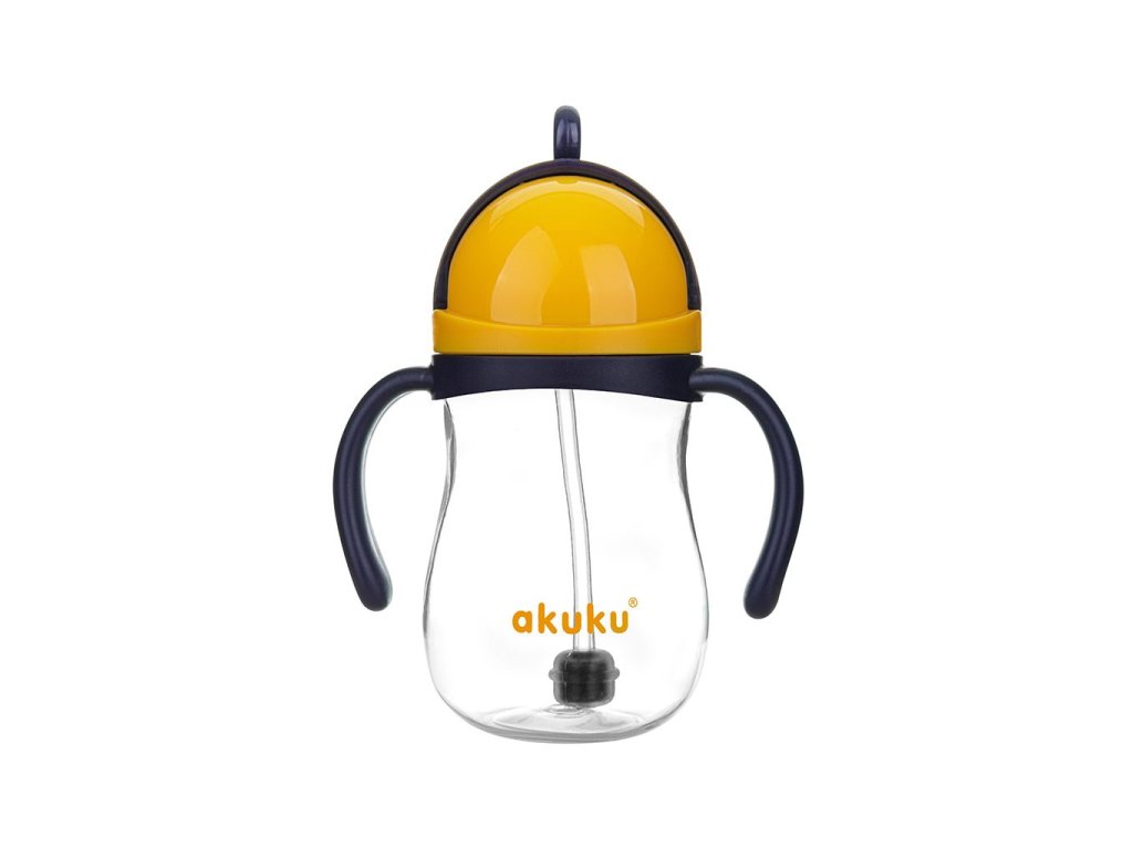 Kouzelná láhev s brčkem a závažím Akuku 280 ml žlutá