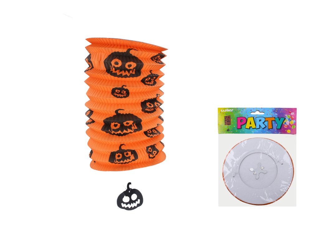 Lampion válec 15 cm, papírová dekorace, motiv dýně