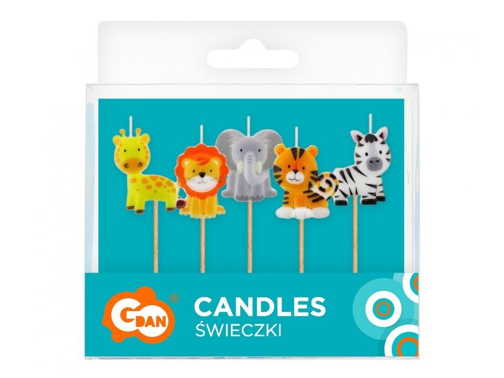 Dortové svíčky SAFARI ZVÍŘÁTKA 5 kusů