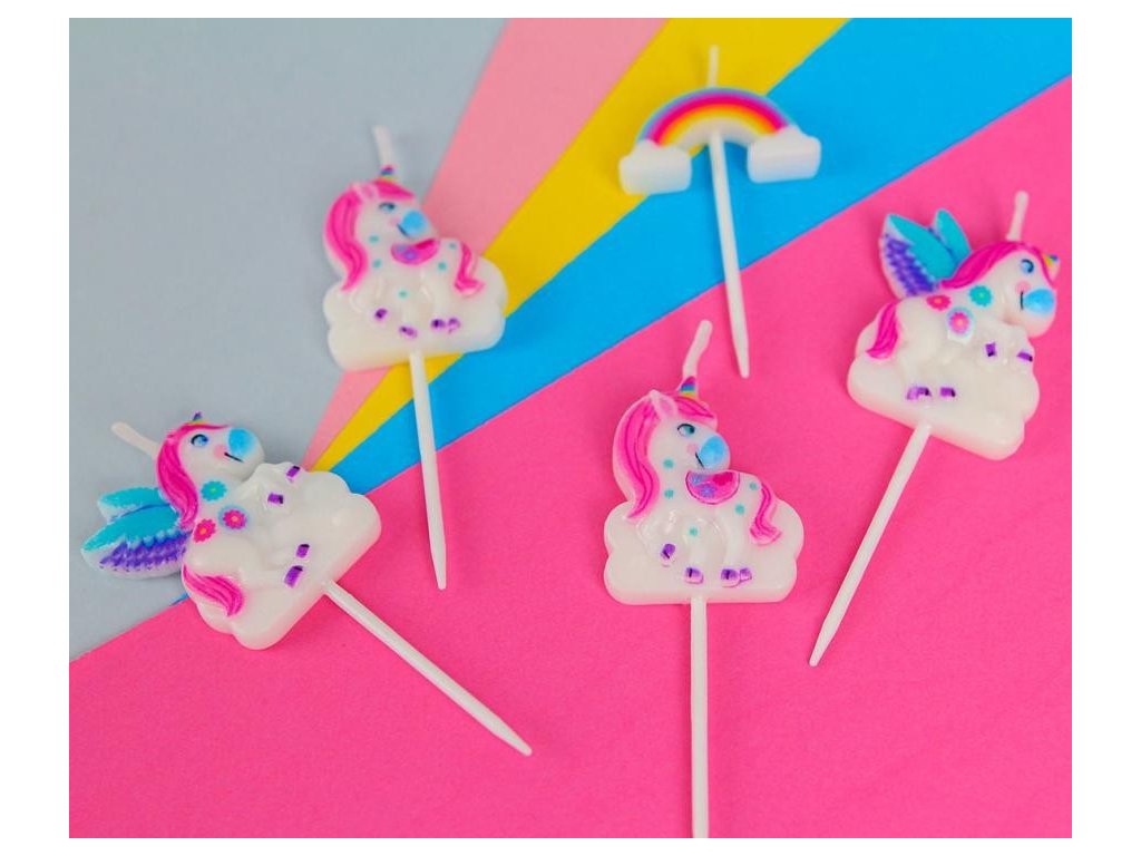 Sada obsahuje 5 svíček, které krásně ozdobí dort na narozeninové oslavě nebo tematické párty s motivem jednorožce. Perfektní volba pro malé princezny i milovníky kouzelných oslav. ✨