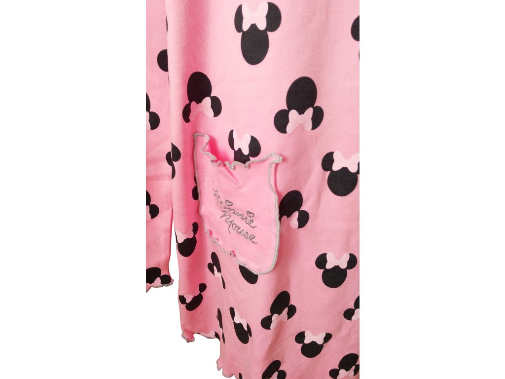 Velmi příjemná a pohodlná bavlněná noční košilka s roztomilými puntíky a oblíbenou myškou Minnie. Košilka má prodloužený zadní díl.