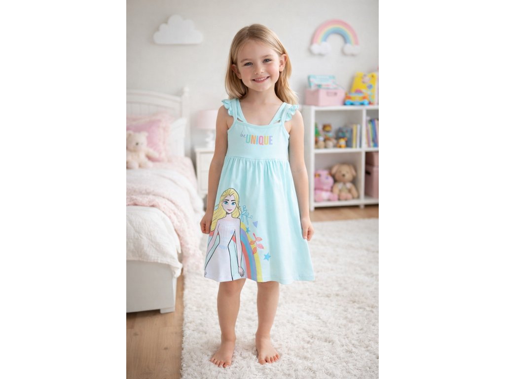 Oblékneme vaši holčičku do úžasné dívčí noční košilky s princeznou Elsou. Elsa zaručí pohádkové sny a velmi pohodlné spinkání. Noční košilka Ledové království je vyrobena z jemné bavlny s celolátkovým motivem, je pružná, sukýnka se krásně rozšiřuje. Barvička je v reálu moc krásná, má mentolový nádech. Maminky tuto noční košilku kupují i jako lehké letní šatičky.