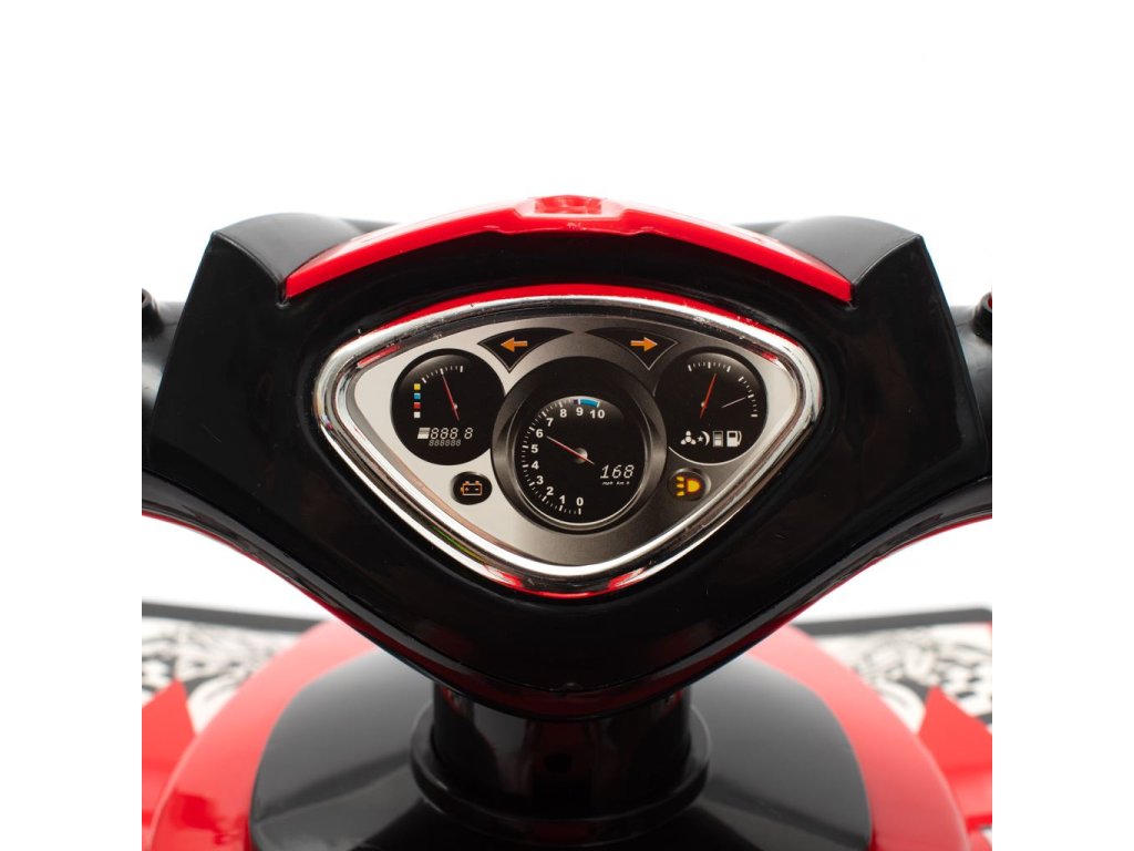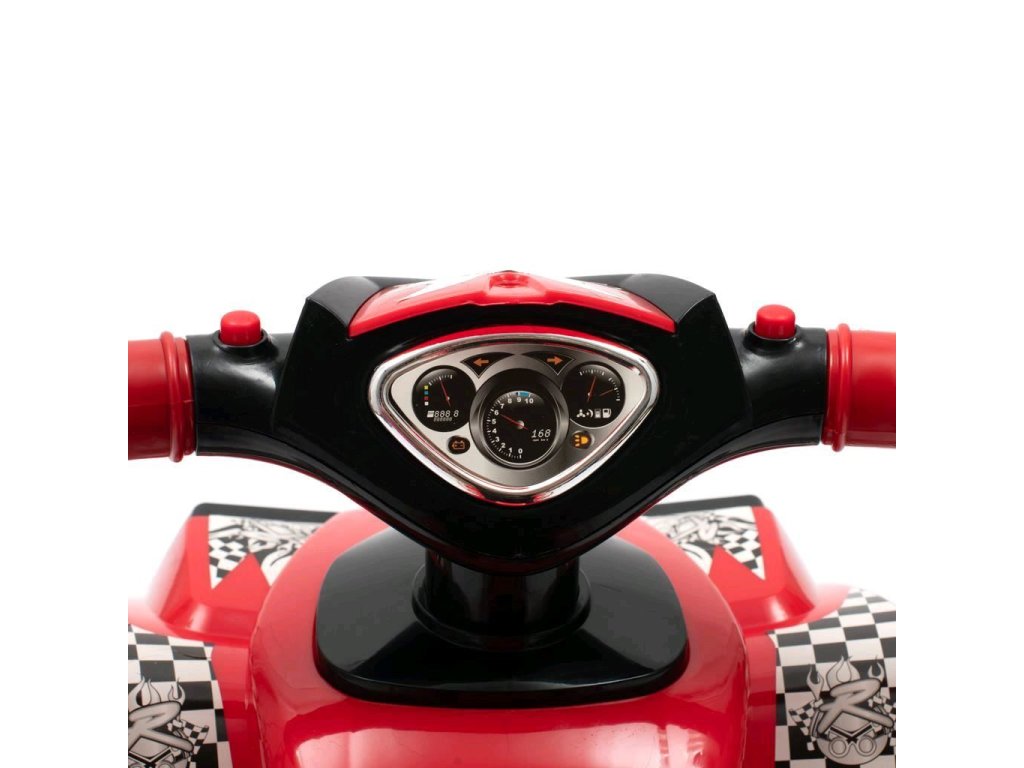 Skvělá Čtyřkolka Baby Mix se třemi melodiemi, klaksonem a blikajícími světýlky na řídítkách. Čtyřkolka má veselé barvy a je vyrobena z kvalitního a pevného plastového materiálu. Odrážedlo pomáhá rozvíjet motorické schopnosti dítěte a zaručí mu spoustu zábavy a legrace. Je určeno jak pro nejmenší děti, které už umí sedět, tak i pro děti, které se už naučily chodit. S čtyřkolkou si Vaše dítě užije spoustu legrace a zábavy. Naše super čtyřkolka skvěle vypadá, má komfortní široké sedadlo, široká řídítka a velká plastová kola. Na řídítkách má efektní houkačku a tlačítko se třemi uloženými melodiemi.
