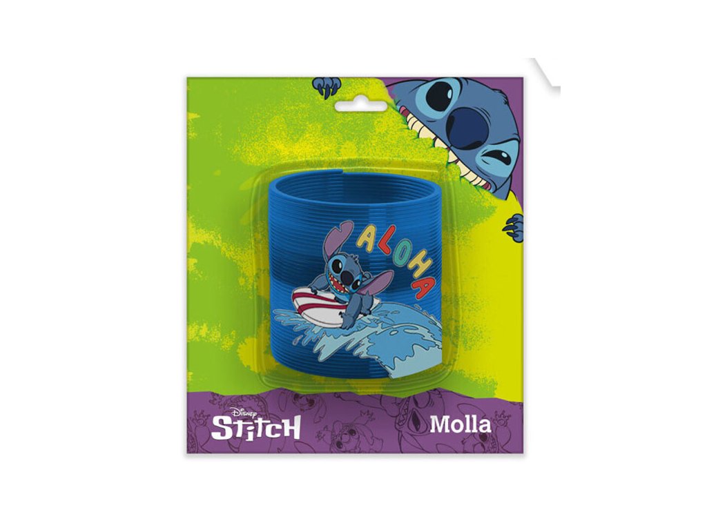 Pružinová spirála s motivem oblíbené postavičky Stitch je jednoduchá, ale velmi zábavná hračka. Stačí ji položit na horní schod nebo nakloněnou plochu a sledovat, jak se pružina překlápí krok za krokem dolů.