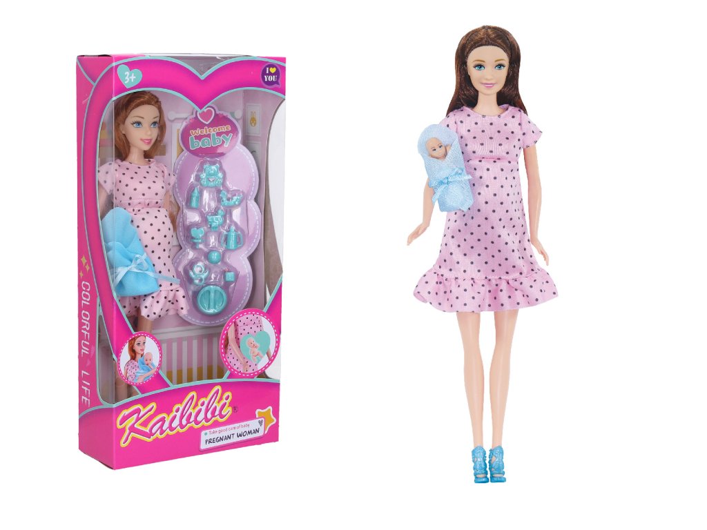 Panenka těhotná s příslušenstvím set. Velikost 29 cm.