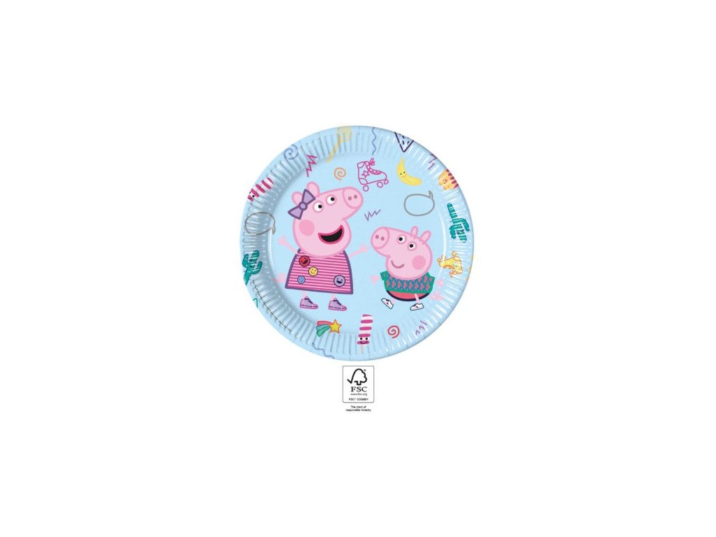 Udělejte z narozenin veselé setkání s papírovými talířky Prasátko Peppa 🐷💙. Roztomilý motiv Peppy a jejích kamarádů na barevném pozadí okamžitě vykouzlí úsměv na tváři každého dítěte a dodá oslavě hravou, pohodovou atmosféru. Talířky krásně doplní tematickou výzdobu a postarají se o radostnou náladu u slavnostního stolu 🎉✨.