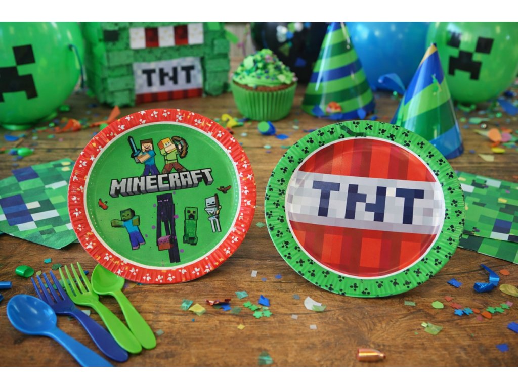 Papírové talíře Minecraft pro parádní párty kluků i holek. V balení najdeš 8 kusů ve dvou variantách této legendární hry. Průměr party talířů je 23 cm.Produkt s certifikátem FSC - pokud vidíte na výrobku logo FSC, můžete si být jisti, že svým nákupem podporujete šetrné lesní hospodaření s ohledem k přírodě.