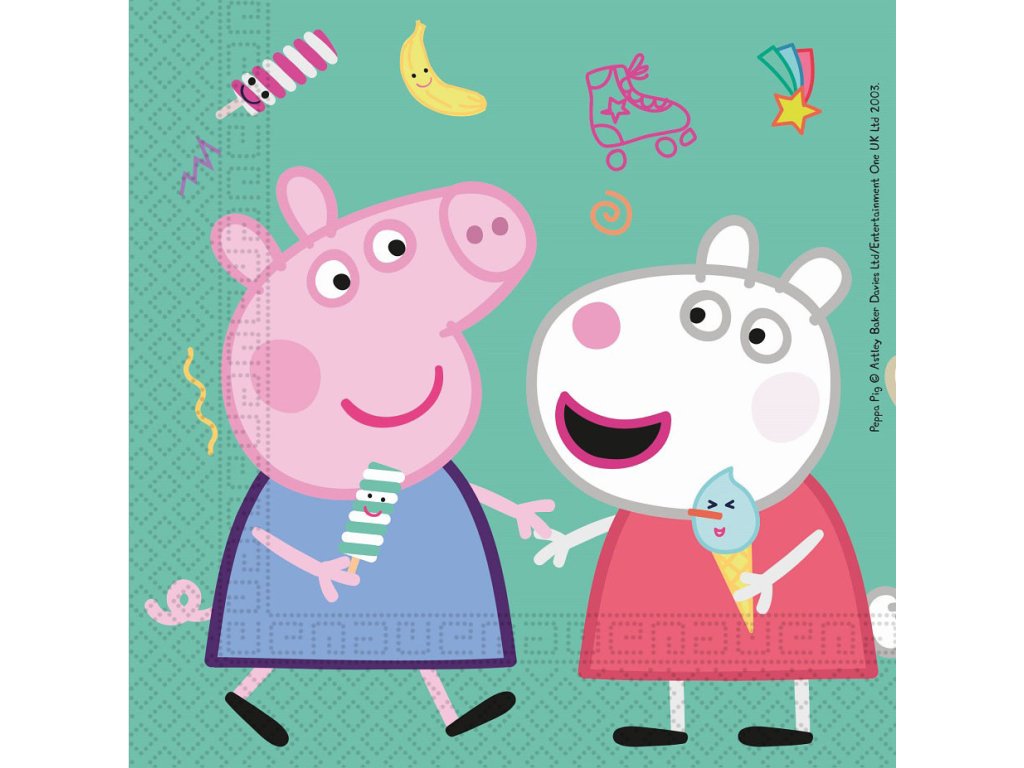 Ubrousky jsou praktické a ideální pro slavnostní stolování. Skvěle doplní kelímky, talířky i další dekorace s motivem Prasátko Peppa, takže snadno vytvoříte krásnou tematickou výzdobu. 🌈