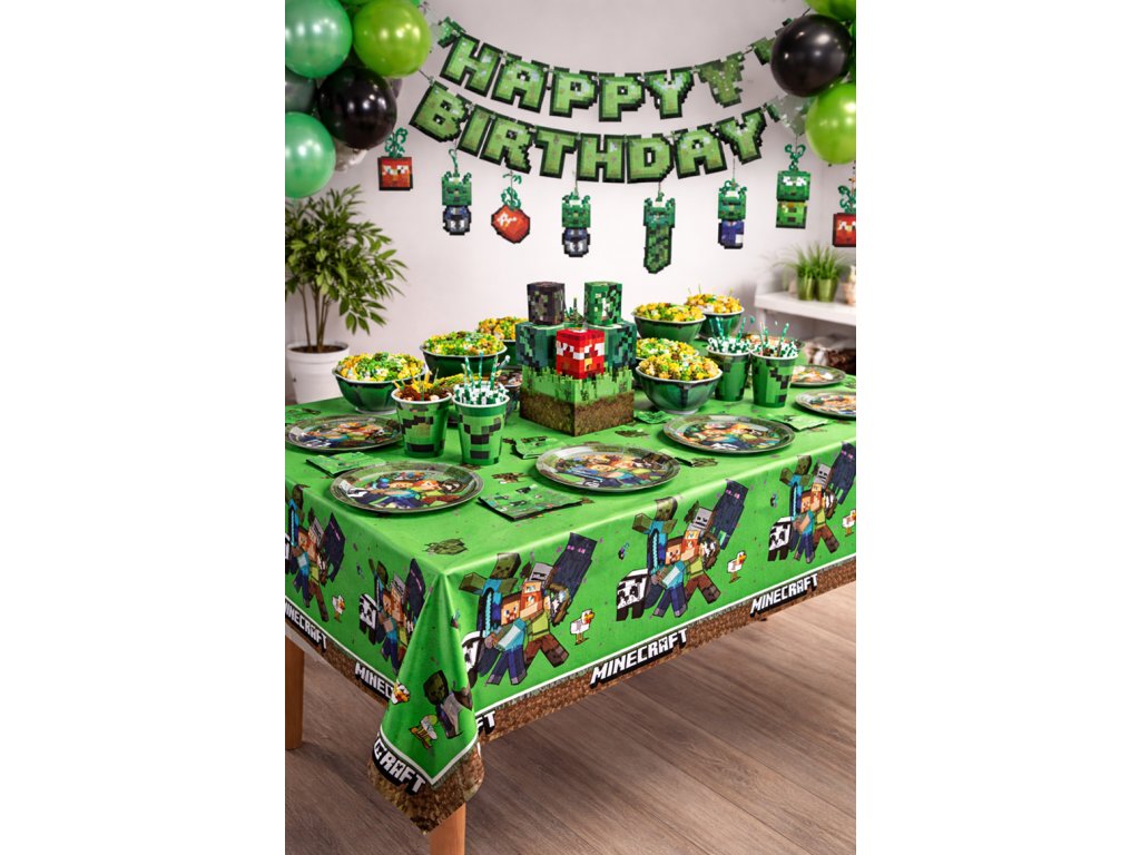 Plastový ubrus Minecraft je vhodný nejen na party, ale i na domácí tvoření.