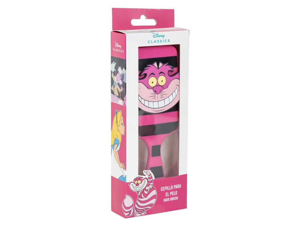 Kartáč na vlasy s motivem kočky Šklíby z pohádky Alenka v říši divů přináší veselý vzhled a hravý design. Výrazná růžová barva a 3D motiv usmívající se kočky zaujmou na první pohled.