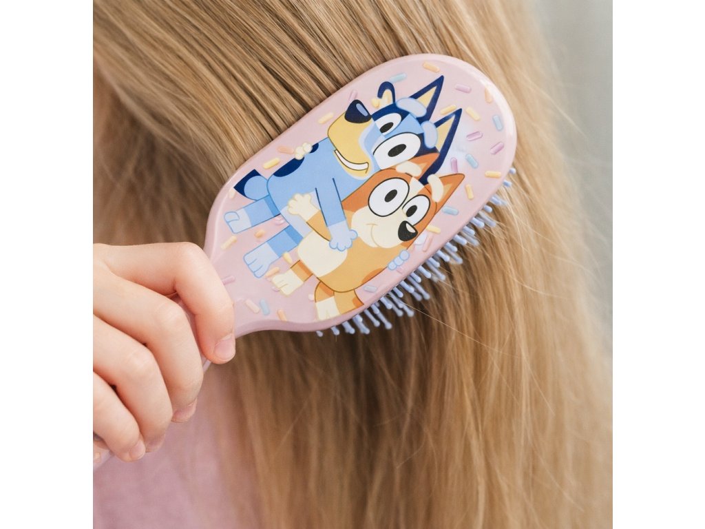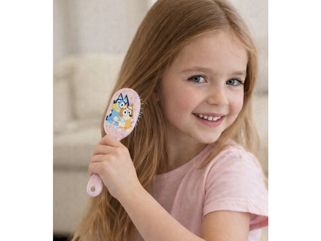 Dětský kartáč na vlasy Bluey je ideální volbou pro každodenní péči o dětské vlásky. Veselý design s oblíbenými postavičkami Bluey a Bingo promění česání v zábavu a zpříjemní ranní i večerní rutinu. Kartáč má jemné plastové štětiny, které šetrně rozčesávají vlasy bez tahání a nepříjemného bolestivého pocitu.