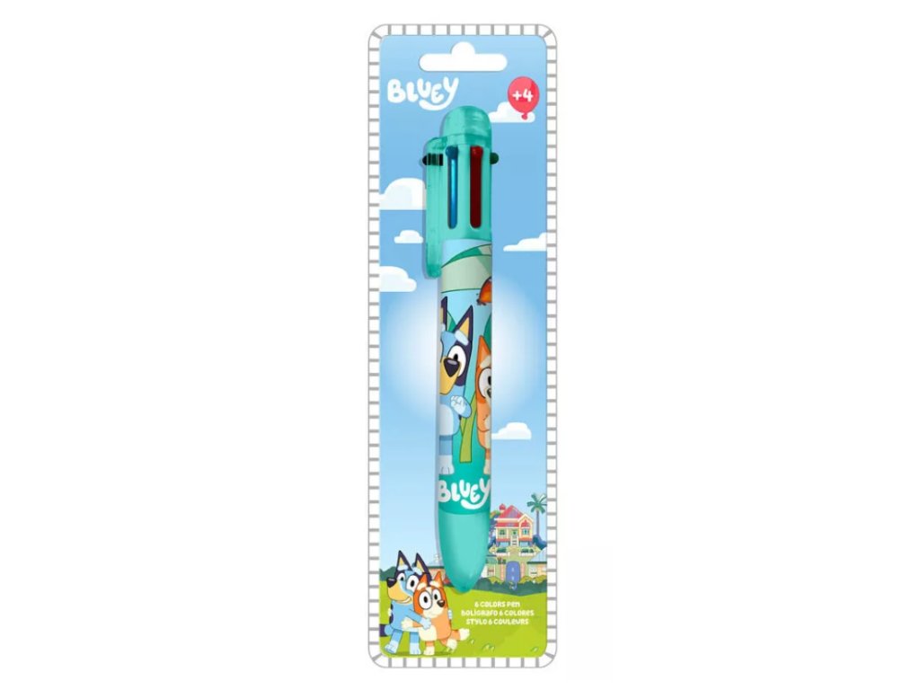 Praktická a hravá šestibarevná propiska Bluey potěší všechny malé školáky i předškoláky. Oblíbený motiv Bluey zaujme kluky i holky a promění každé psaní v zábavu. Díky šesti různým barvám v jednom peru budou zápisky přehledné, barevně odlišené a lépe organizované.