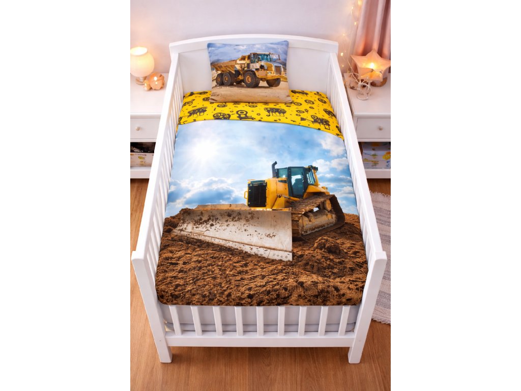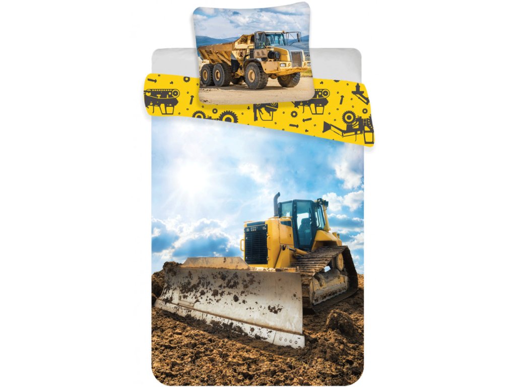 Na povlečení najdete velký buldozer a výkonný dumper, které děti fascinují a podporují jejich zájem o techniku a svět kolem nich. Motiv rozvíjí fantazii a přináší radost každý večer.