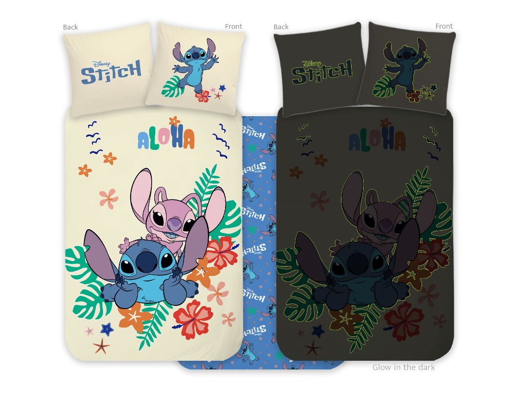Dopřejte svým dětem pohodlný a kouzelný spánek s originálním povlečením Disney Lilo & Stitch. Veselý tropický motiv s nápisem „Aloha“ a oblíbenými postavičkami Stitch a Angel rozzáří každý dětský pokoj. Speciální efekt Glow in the dark navíc způsobí, že vybrané části designu po nasvícení jemně svítí ve tmě, což vytváří příjemnou atmosféru při usínání.