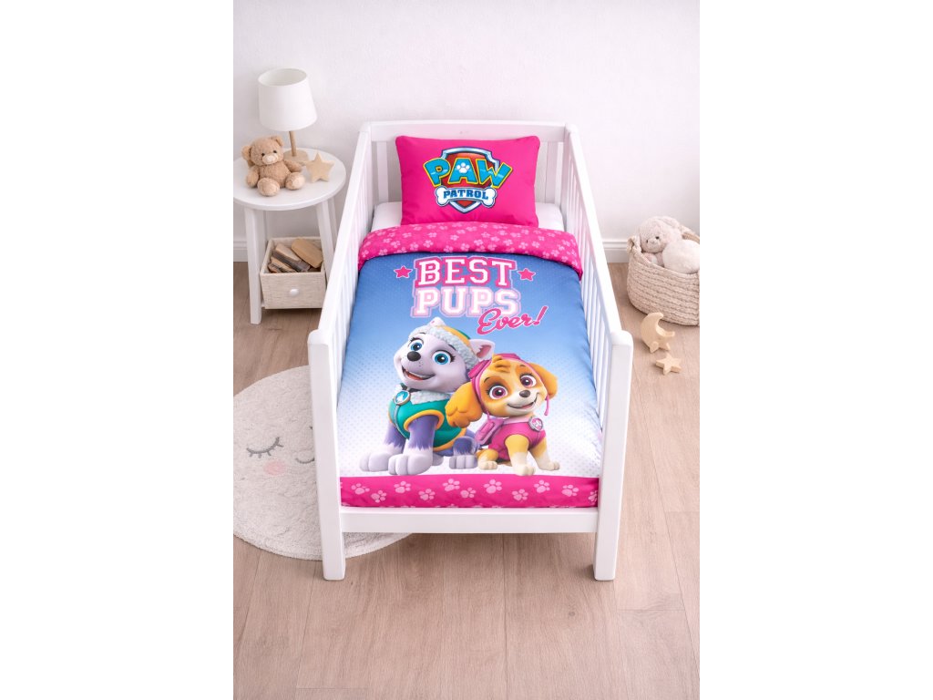 Krásné dětské povlečení do miminkovské postýlky s oblíbenými hrdinkami z Tlapkové patroly potěší všechny malé holčičky 💗. Roztomilý růžový design s postavičkami Skye, Everest a...