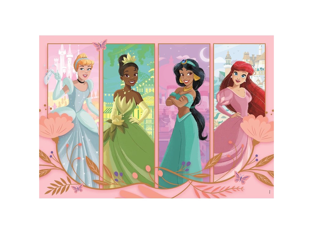 Na obrázcích se objevují známé princezny jako například Cinderella, Tiana, Jasmine nebo Ariel. Puzzle tak děti vtáhne do pohádkového světa plného dobrodružství a fantazie.