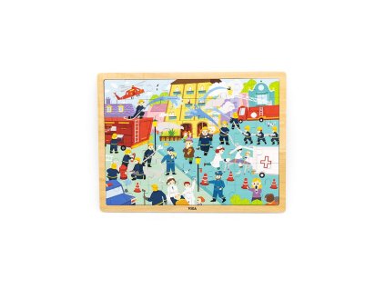 Motivem skládačky je zásah hasičského sboru.Sada obsahuje 48 očíslovaných dílků puzzle a podložku s kopií obrázku, která menším dětem usnadňuje skládání puzzle.