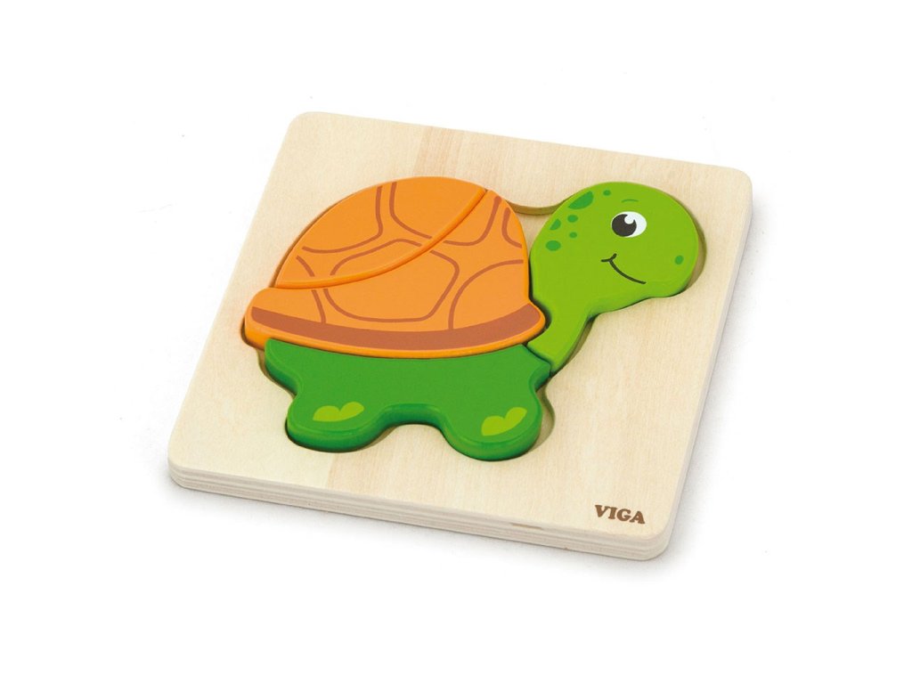 Kvalitní dřevěné puzzle pro nejmenší Viga. Puzzle na dřevěném podkladu je tvořeno čtyřmi dílky. Velké oblé dílky zajišťují snadnou manipulaci a přiložená deska s vyfrézovaným...