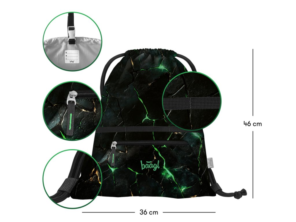 • Praktický sáček s kapsou na zip je vhodný nejen na přezůvky do školy, ale také na cesty, do města, na sportovní či jiné volnočasové aktivity.• Vyroben z pevného, omyvatelného materiálu a vybaven pevnými tkanicemi pro pohodlné nošení.