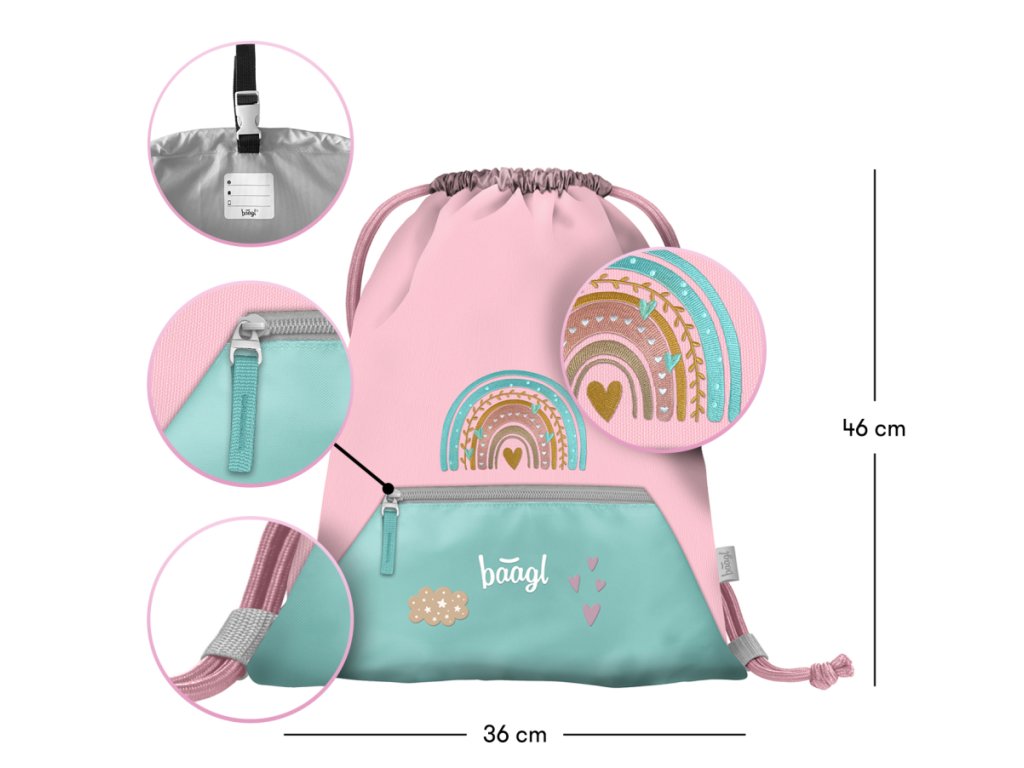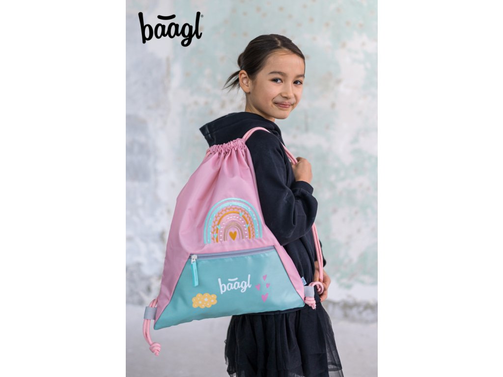 BAAGL Sáček s kapsou Duha růžový