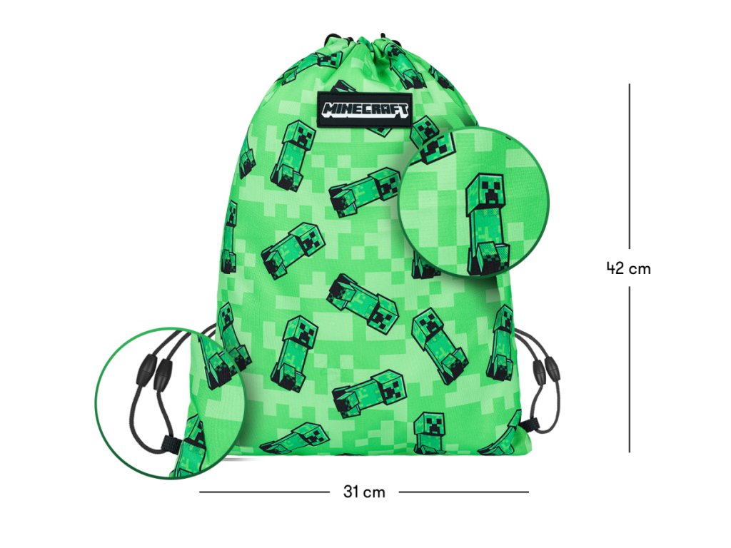 • Sáček na cvičky nebo přezůvky s motivem Minecraft.• Sáček je vyroben z pevného omyvatelného materiálu.