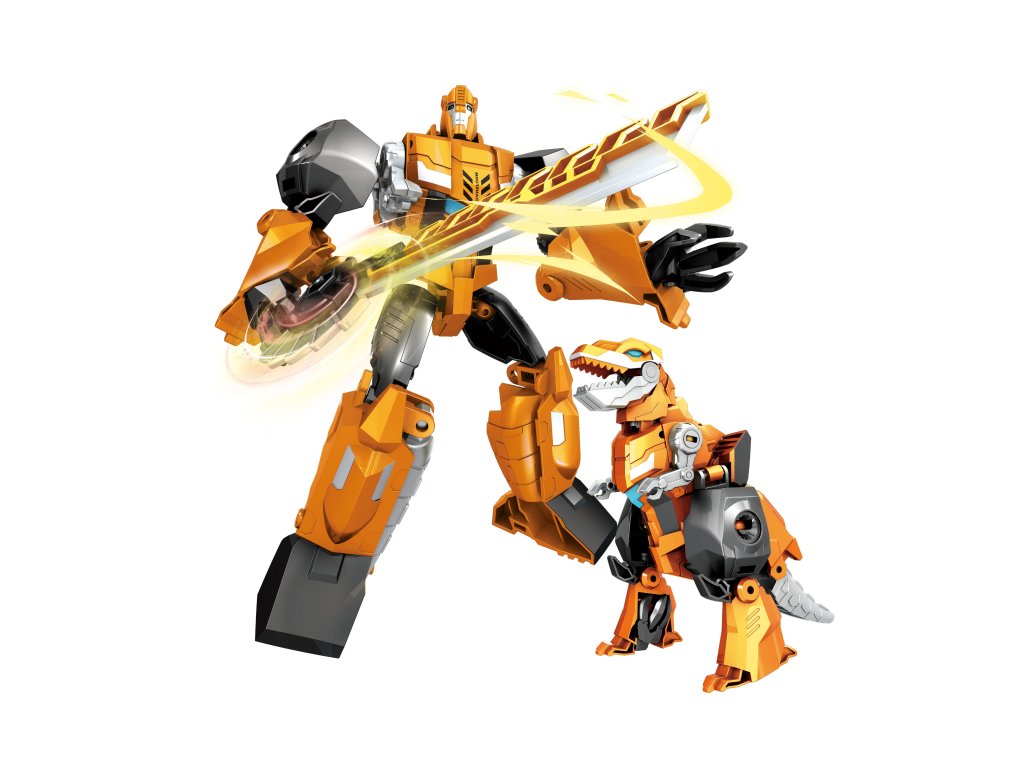 Dinorobot T-REX žlutý. Velikost 19,5x14 cm. Robot, transformuje se na dinosaura T-Rexe.