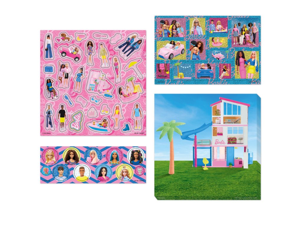 Sada obsahuje klasické i metalické samolepky, které dodají výtvorům jedinečný vzhled. Součástí je také dekorace na ruku, která potěší každou malou milovnici Barbie. Kompaktní balení je ideální na doma, na cesty i jako dárek.