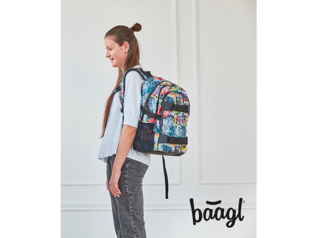 Školní set pro děti vhodný od 3. třídy ZŠ. Set obsahuje batoh, penál a sáček na obuv, to vše s metalicky bronzovým logem BAAGL.